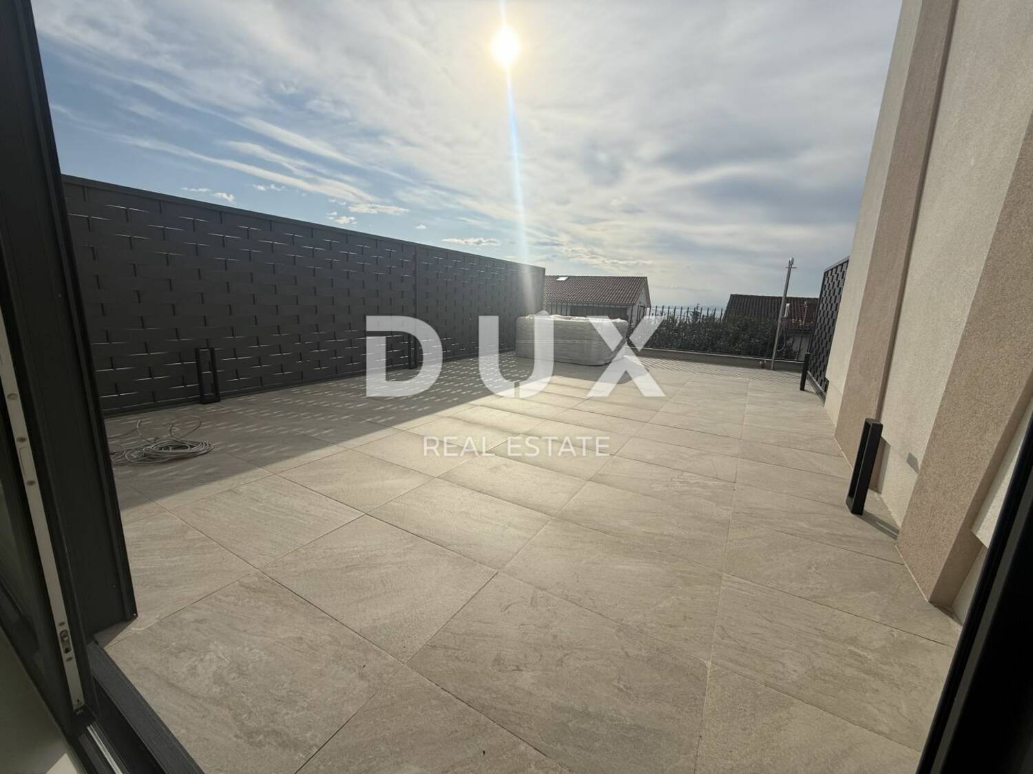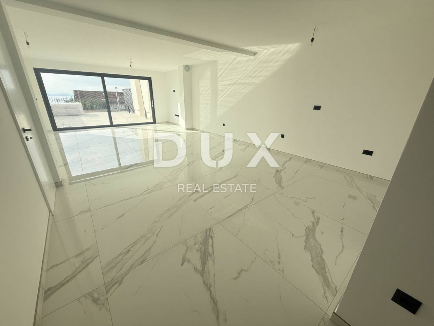 Na katu se nalaze tri spavaće sobe, svaka soba sa vlastitim kupatilom i garderobom, welness, hodnik i terasa južne orijentacije s pogledom na more.