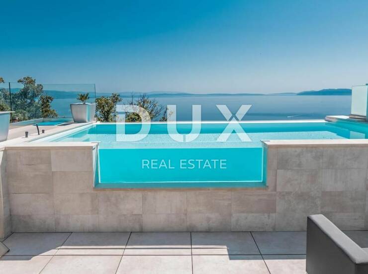 OPATUJA, POBRI- dvojna kuća / villa 250m2 s panoramskim pogledom na more i bazenom na krovu + okoliš 400m2