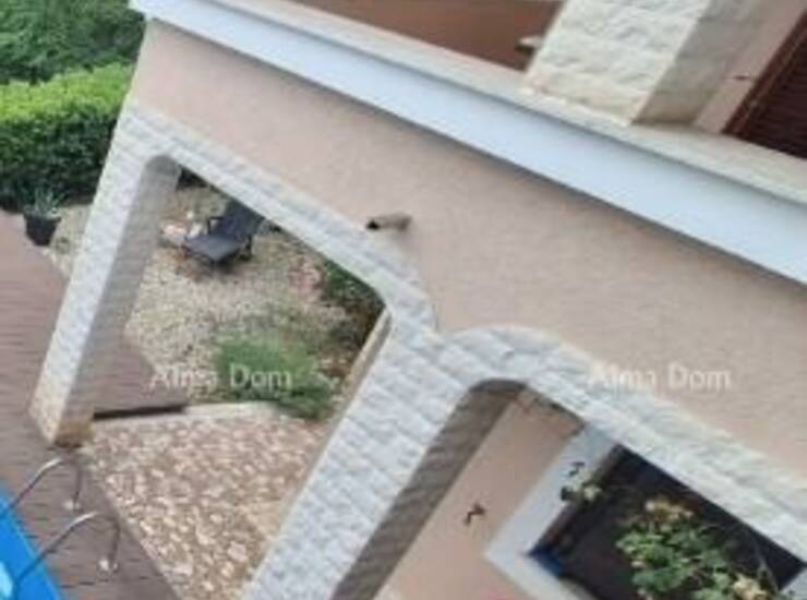 Iz blagovaonice u prizemlju izlazi se u uređeni vrt s bazenom, vanjskim tušem i sjenicom s roštiljem, okruženim lavandom i mediteranskim biljem. Kuća ima dva parkirna mjesta i prodaje se potpuno namještena.