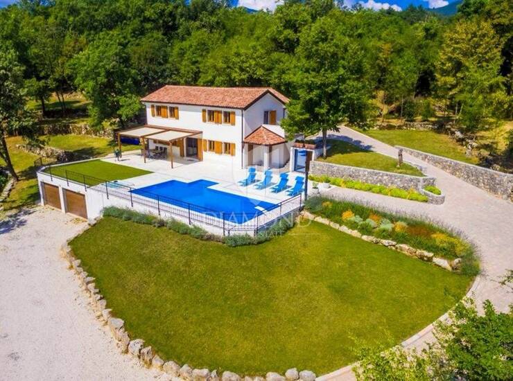 Na jedinstvenoj lokaciji u srcu prirode, ova ekskluzivna vila pruža neusporedivu privatnost i luksuz. Smještena na ogromnoj okućnici od čak 40.000 m², nekretnina predstavlja pravi raj za one koji traže mir, prostor i vrhunsku kvalitetu života.