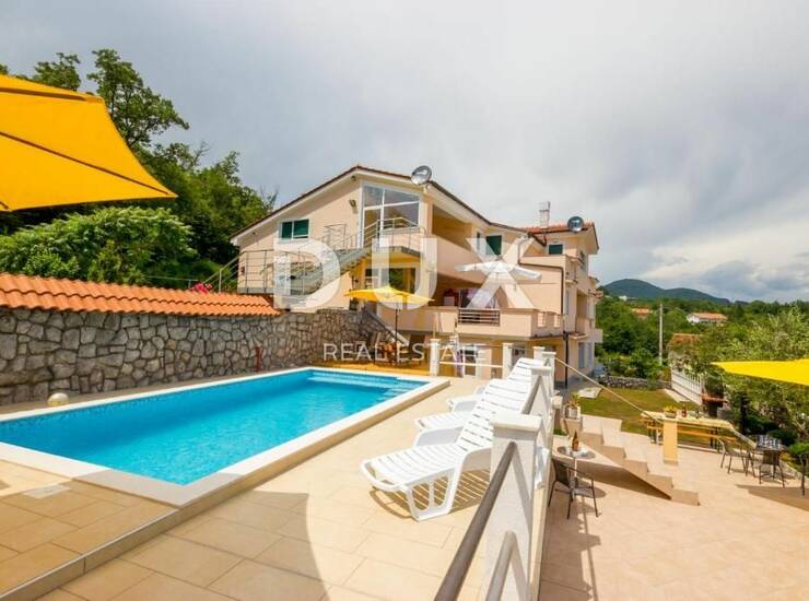 U blizini prekrasne Opatije, smjestila se ova Villa sa sedam apartmana. Villa je građena kao trokatnica. U prizemlju se nalazi velika garaža od 300 četvornih metara, koja se može prenamijeniti u poslovni prostor, stan i sl. Dva stana su jednosobna, četiri stana dvosobna te jedan studio. Svi su stanovi namješteni i opremljeni, postavljeni su klima uređaji te centralno grijanje na plin. Ono šta je zajedničko svakom stanu su terase s kojih se pruža predivan pogled na more. U dvorištu kuće nalazi se bazen, sunčalište te vanjski roštilj. Smještena u šumovitom mjestu, 9 kilometara iznad Opatije, pruža privatnost, smirenost i svježinu.