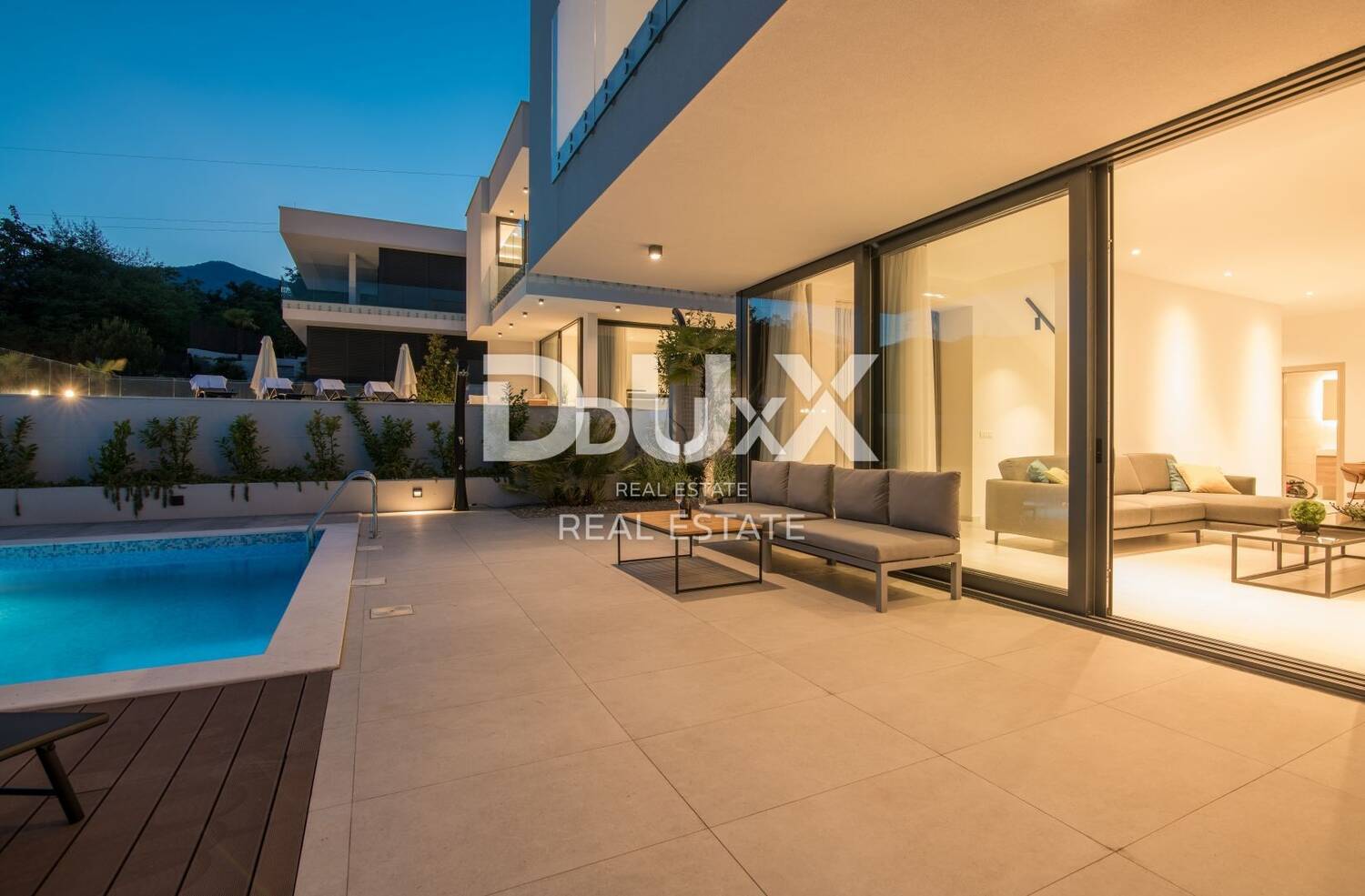 Upravo u blizini čarobne Opatije, Agencija Dux nekretnine s ponosom predstavlja modernu vilu s dvije zasebne stambene jedinice, smještenu na mirnoj i atraktivnoj lokaciji s jednim od najljepših pogleda na Kvarnerski zaljev. Vila je pažljivo projektirana i kvalitetno izgrađena, a smještena je u uvalici zaštićenoj od bure, što osigurava privatnost, udobnost i užitak boravka tijekom cijele godine.