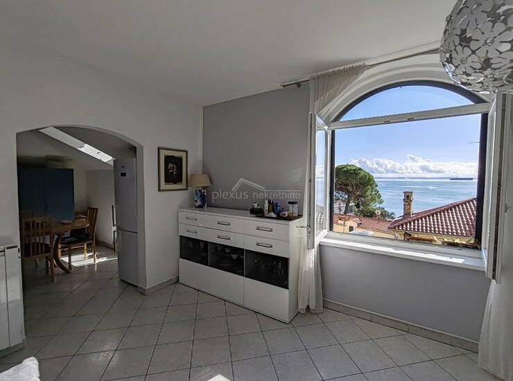 Posredujemo u prodaji 2S+DB, stan površine 81 m2 smješten u strogom centru Opatije sa prekrasnim pogledom na more. Stan se nalazi na visokom potkrovlju vile iz vremena habsburškog doba. Sastoji se od hodnika, kuhinje s blagovaonicom, dnevnog boravka, dvije spavaće sobe i kupaonice. Stan je izrazito sunčan i svijetao, južne orijentacije, s jednim parkirnim mjestom na okućnici.