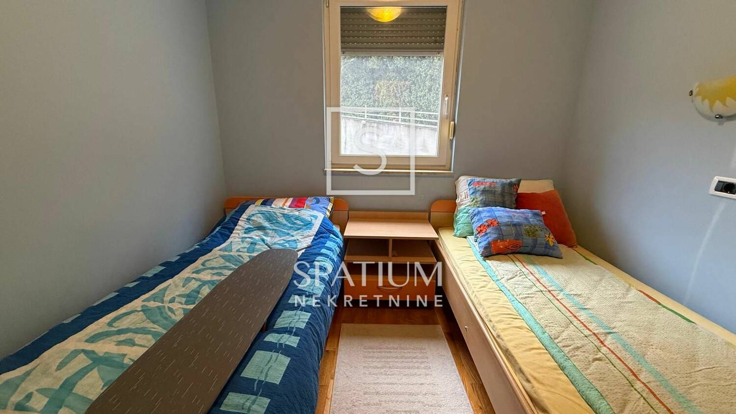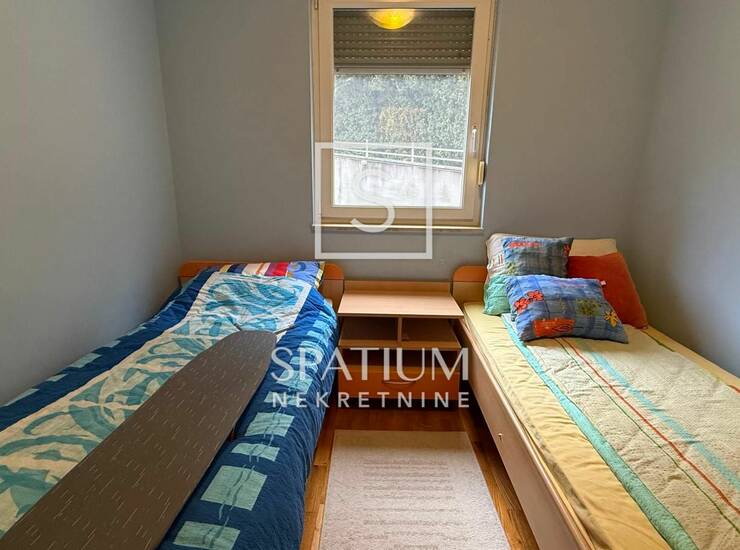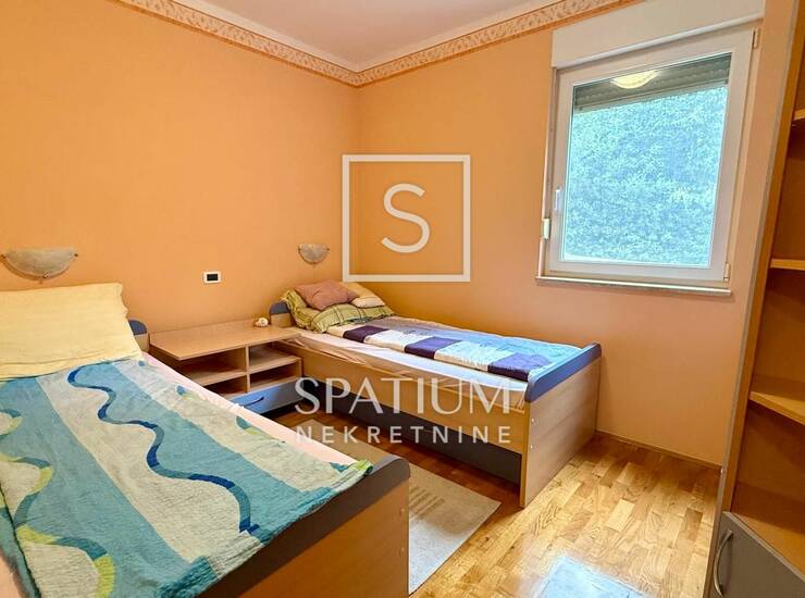 Stan se sastoji od prostranog hodnika i predsoblja, tri udobne spavaće sobe, kupaonice te dodatnog gostinjskog toaleta. Tu je i praktična ostava.