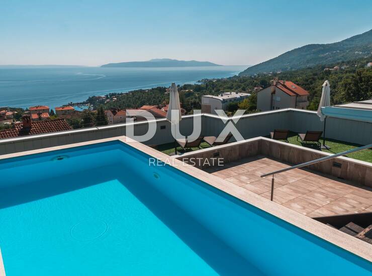 Krovna terasa s bazenom je jedistvena karakteristika u Ičićima i u Opatiji, s kojeg se pruža nesmetani panoramski pogled na more koji ostavlja bez teksta.