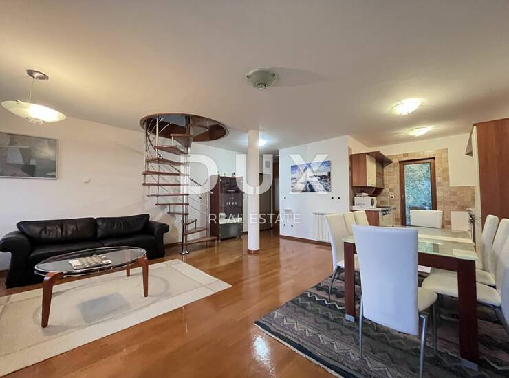 Radi se o impozantnom dvoetažnom penthouseu smještenom na drugom katu, prostirući se na ukupno 108 m2. Svojom funkcionalnošću i sofisticiranim dizajnom, ovaj stan nudi savršenu ravnotežu između udobnosti i modernog načina života.