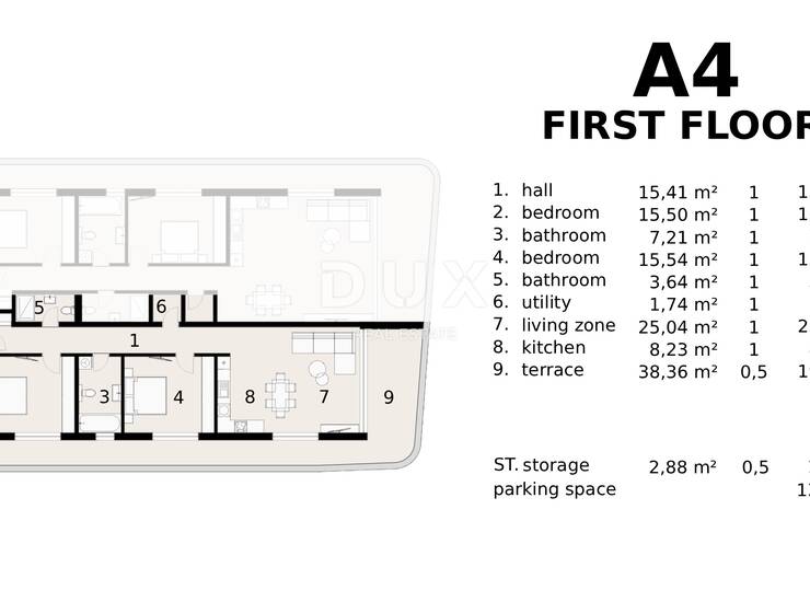 • spremište: 2,88 m² (1,44 m² s koeficijentima)