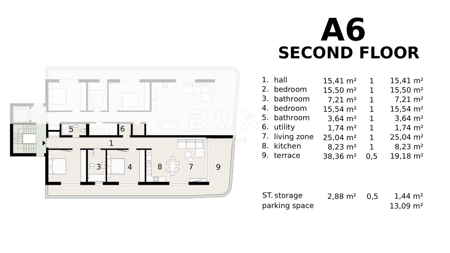 • 1 garažno parkirno mjesto: 13,09 m²