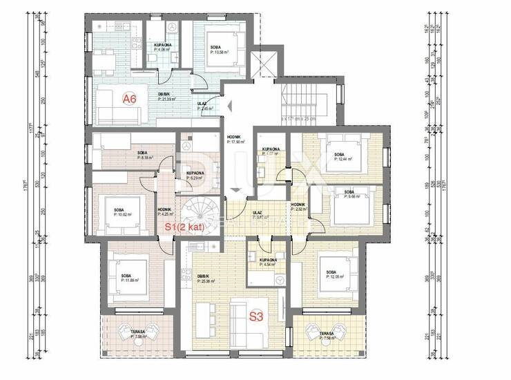 Stan S3 veličine 89m2 nalazi se na 2. katu stambene zgrade i sastoji se od hodnika, dnevnog boravka s kuhinjom i blagovaonicom, 3 spavaće sobe, 2 kupaonice i terase s panoramskim pogledom na more.