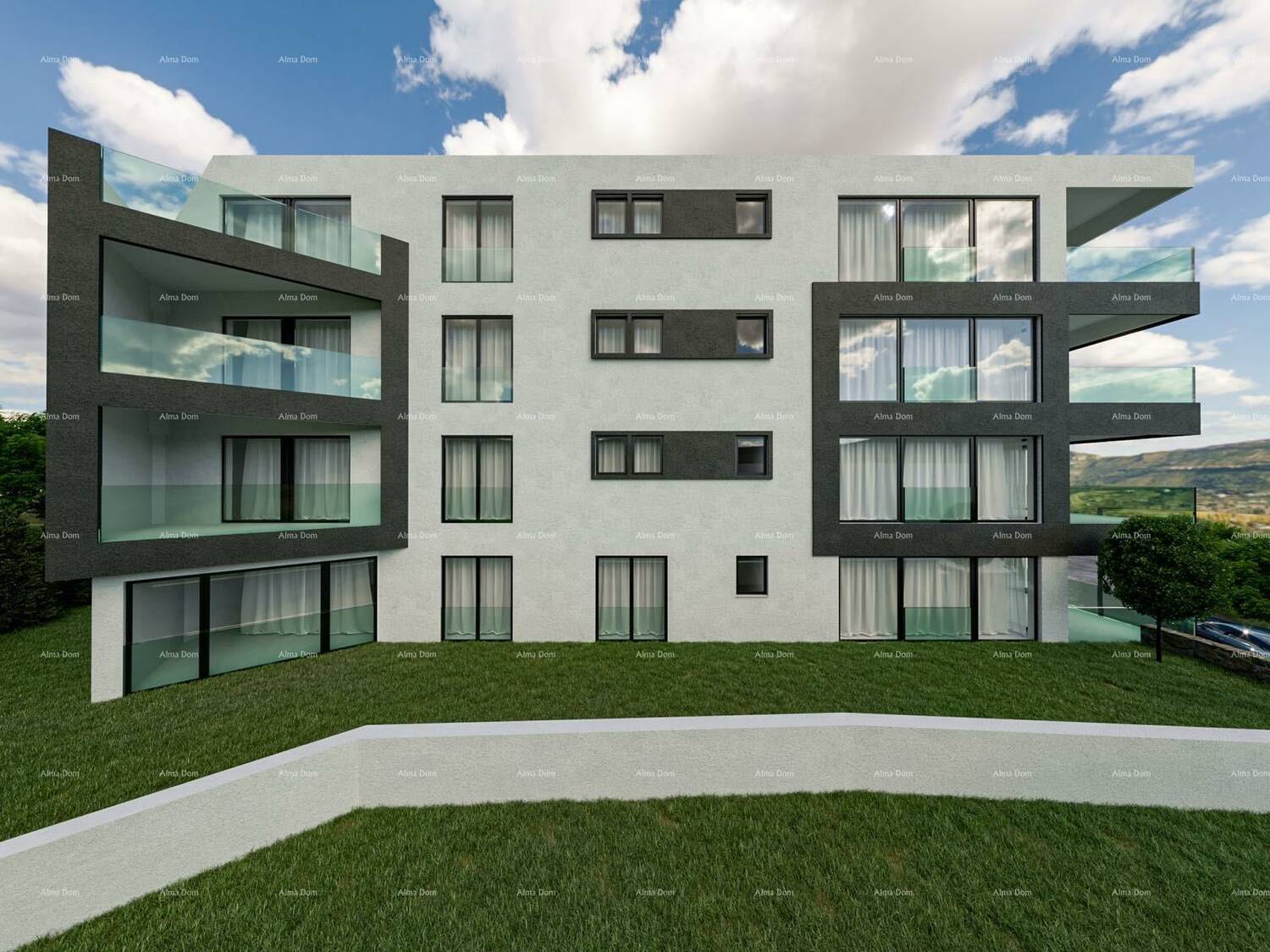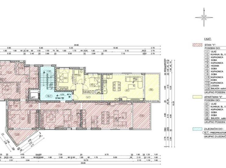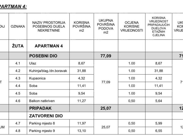 Apartman 4 nalazi se na 1.katu zgrade i sastojat će se od ulaznog hodnika, kuhinje sa dnevnim boravkom i blagavaonicom, 2 spavaće sobe, kupaonice i natkrivenog balkona.