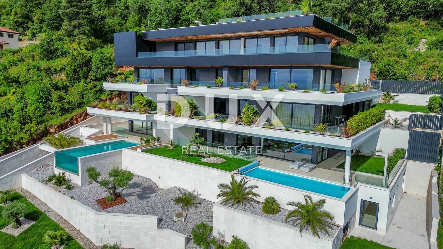 Iz Dux ponude izdvajamo posebnu novogradnju s 8 luksuznih stanova blizu centra Opatije vrhunske kvalitete. Ova rijetka i moćna zgrada u fazi izgradnje 2023-2024 nalazi se samo 250 metara zračne linije od mora i Lungomare. Zgrada se nalazi u mirnoj i sporednoj ulici i pruža panoramski pogled na more. Sa svojim lakim pristupom centru grada, ovaj dom nudi izvrsnu ravnotežu između elegantnog života u predgrađu i bogatog niza pogodnosti koje grad Opatija nudi.