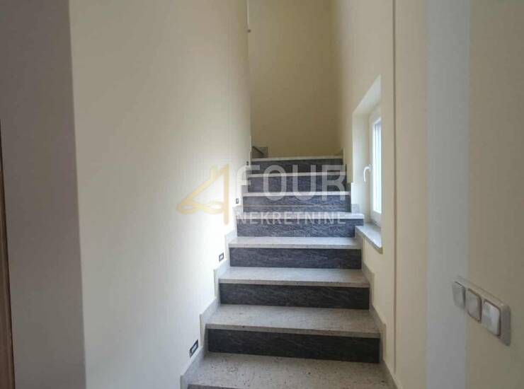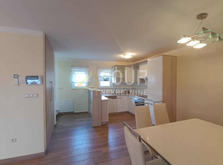 U prizemlju se nalazi ulazni prostor, na prvom katu dnevni boravak s kuhinjom i blagovaonicom te dodatni WC, dok su u potkrovlju smještene dvije spavaće sobe, svaka sa svojom kupaonicom. Dječja soba je kompaktnija, dok je glavna spavaća soba vrlo prostrana. Stan je južno orijentiran, potpuno namješten i odmah useljiv.
