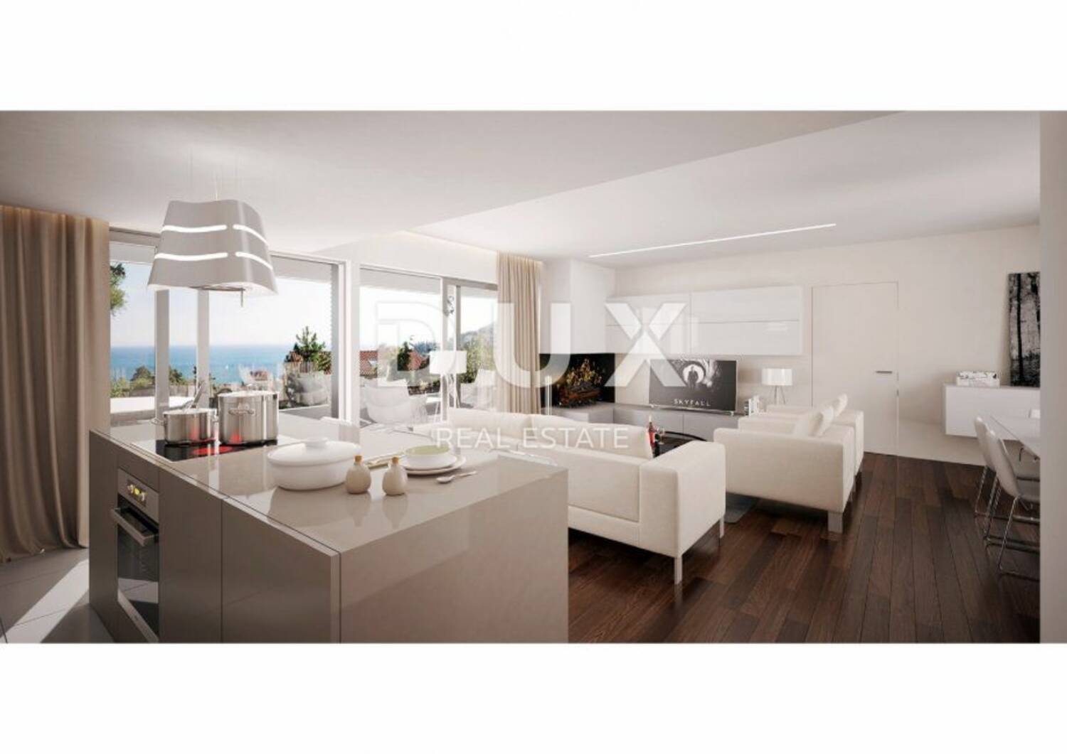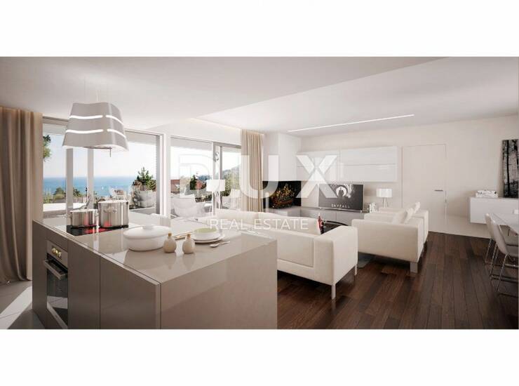 Novogradnja nedaleko centra Opatije, vrhunska gradnja stanova prekrasne arhitekture sjedinjene sa mediteranskim okruženjem i zavidnim pogledom na more. Podijeljena je na dva suterena od kojih je jedan garaža za stanare, a drugi je podijeljen na velika spremišta, zatim prizemlje i dva kata spojenih liftom. Svakome stanu pripada jedno prostrano spremište te po tri parking mjesta u garaži. Kvalitetna gradnja ovih stanova te neponovljivi dizajn okoliša i samog stambenog prostora, imperativ je za kupce koji imaju zavidan budžet i jedinstven životni stil. Ovaj prekrasan i prostran trosoban stan sa dnevnim dijelom od ukupno 182.66 m², se nalazi na prizemlju, južne, sjeverne i istočne orijentacije sa prekrasnom terasom i vrtom s kojih se pruža panoramski pogled na Kvarner. Stan se sastoji od komotnog dnevnog boravka sa blagovaonom i kuhinjom te tri spavaće sobe s tri kupaonice.