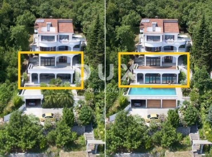 OPATIJA, CENTAR - dvoetažni stan 200m2 (prizemlje + suteren) 3S+DB s panoramskim pogledom na more + okoliš 100m2.