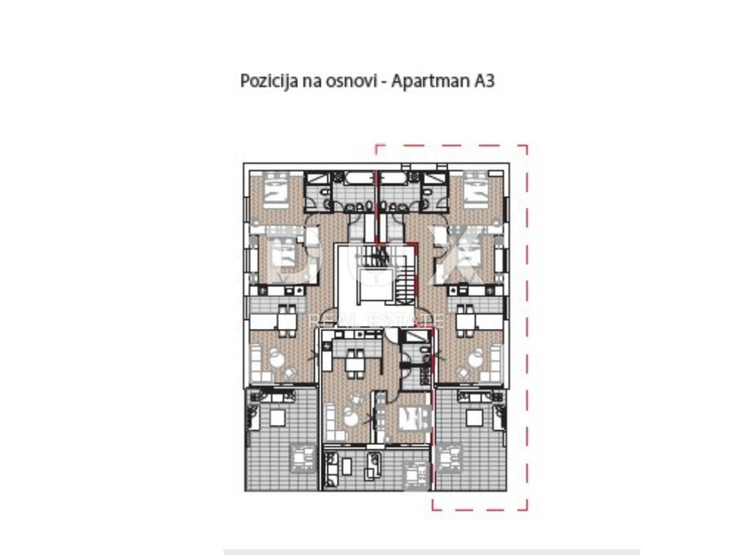 U ponudi je ekskluzivan stan A3 površine 91, 47 m2 na prvom katu novogradnje iznad centra Opatije, velikom terasom i garažom.