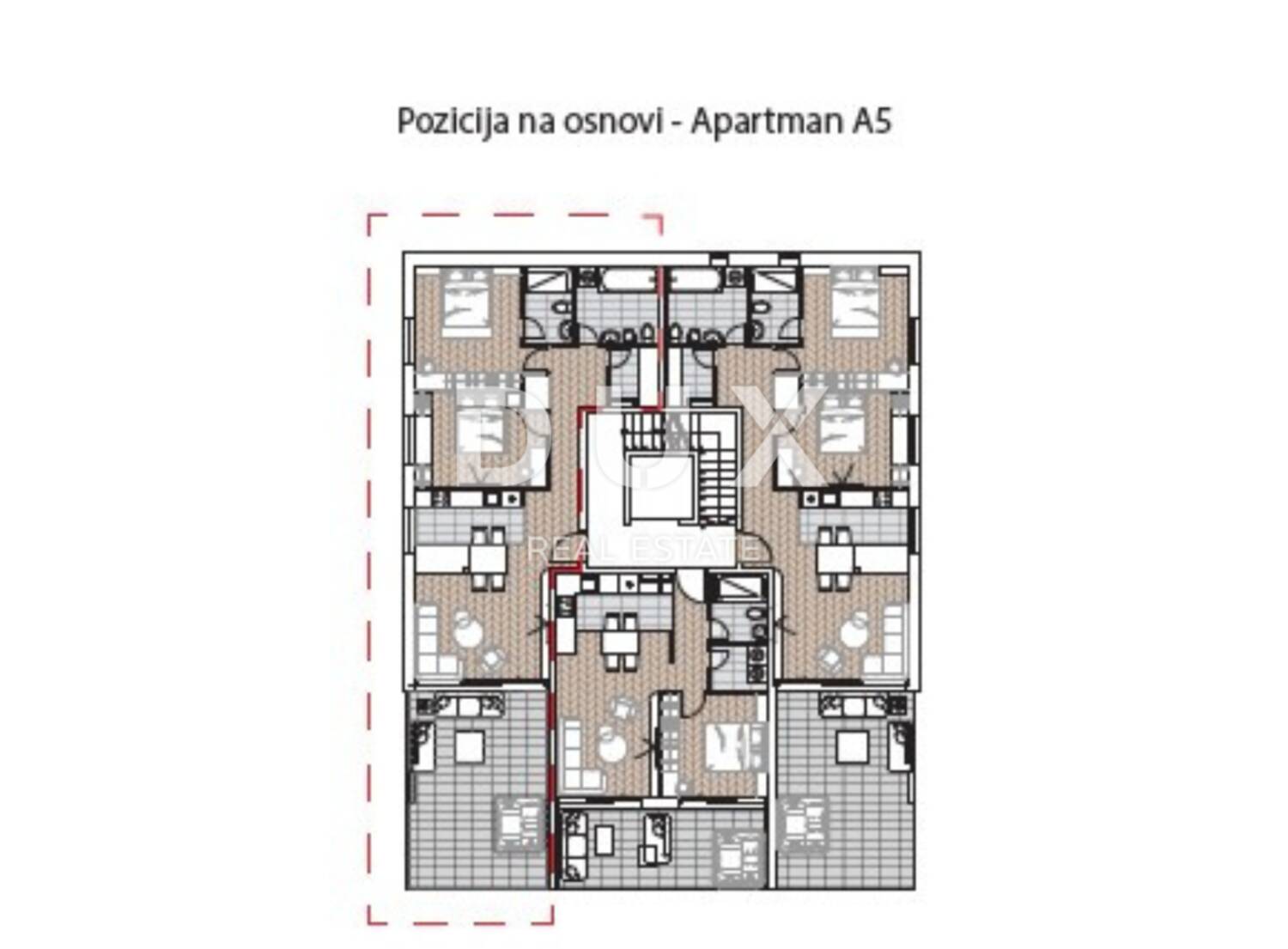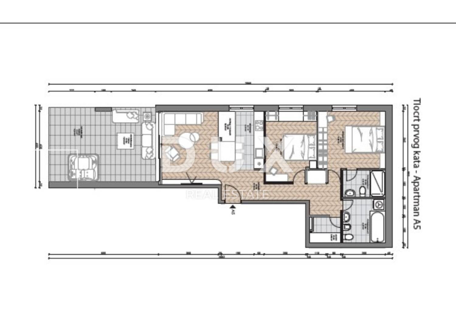 U ponudi je ekskluzivan stan A5 površine 91, 47 m2 na prvom katu novogradnje iznad centra Opatije, velikom terasom, balkonom i garažom.