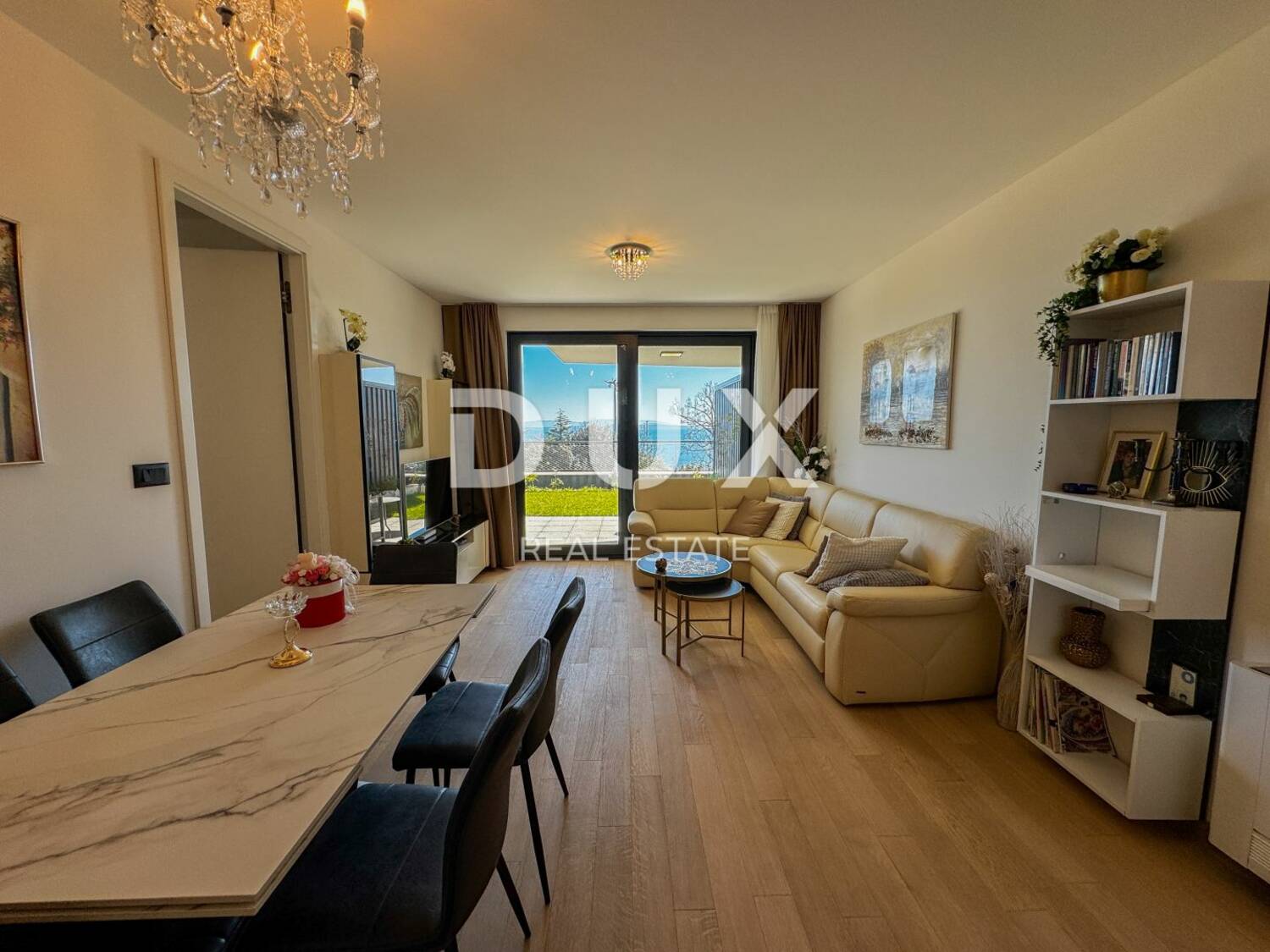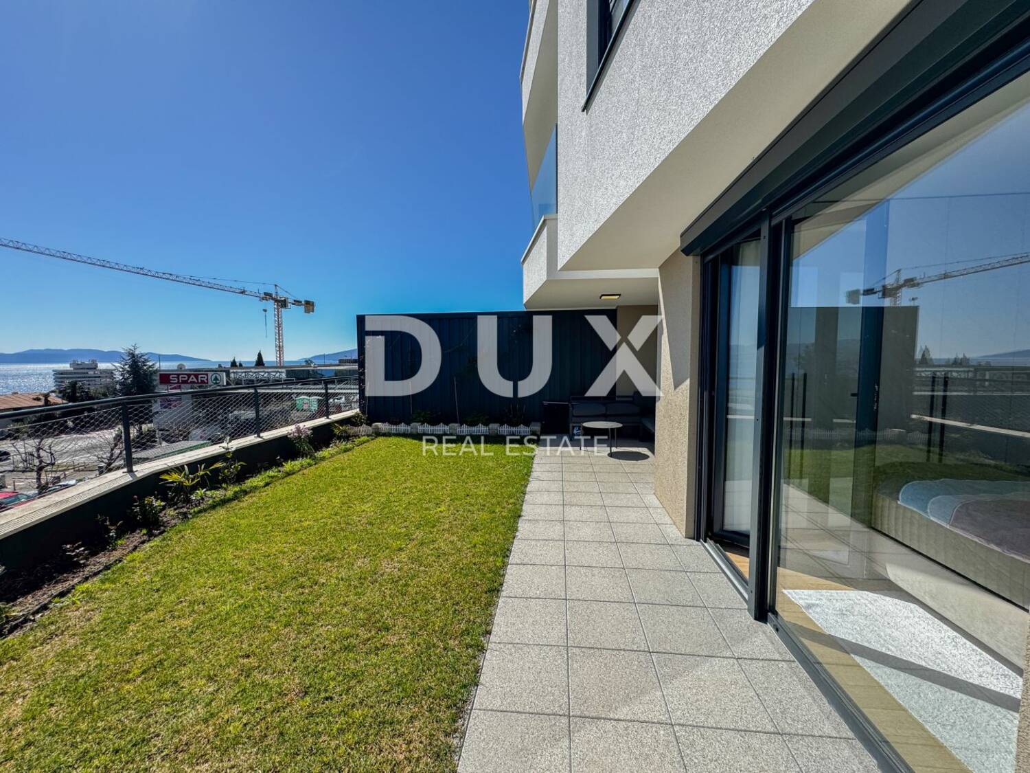 OPATIJA, CENTAR - prekrasan namješten stan u novogradnji s terasom, vrtom i pogledom na more, GARAŽA!