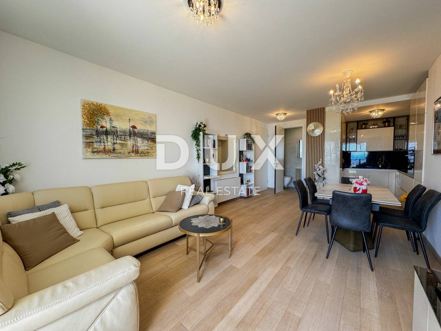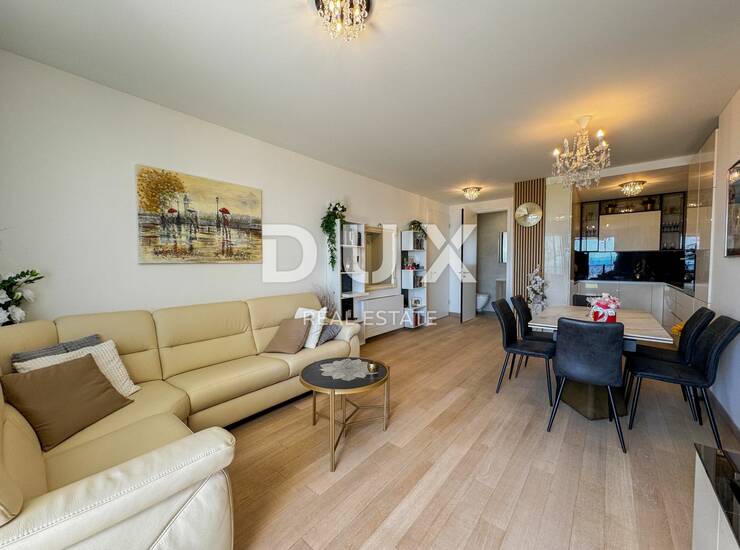 Stan je vrhunski opremljen – fan coil sustav grijanja i hlađenja, visokokvalitetna vanjska aluminijska stolarija, parketi i protuprovalna vrata osiguravaju udobnost i sigurnost (ulaz na code + ključ). Zgrada posjeduje lift i podzemnu garažu. Stan se prodaje novo namješten s doslovno nekorištenim namještajem. Svi ormari te kuhinja rađeni su po mjeri, kao i kreveti i sjedeća garnitura u dnevnom boravku. Važno je naznačiti električne roletne na svakom prozoru, kupaonicu s prozorom te podno grijanje u kupaonici.