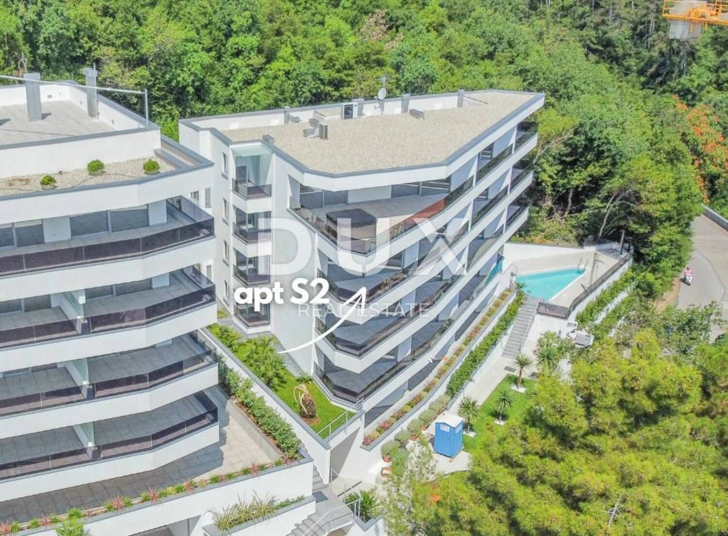 OPATIJA, CENTAR - prostrani stan u novogradnji s pogledom na more, zajednički bazen, garaža