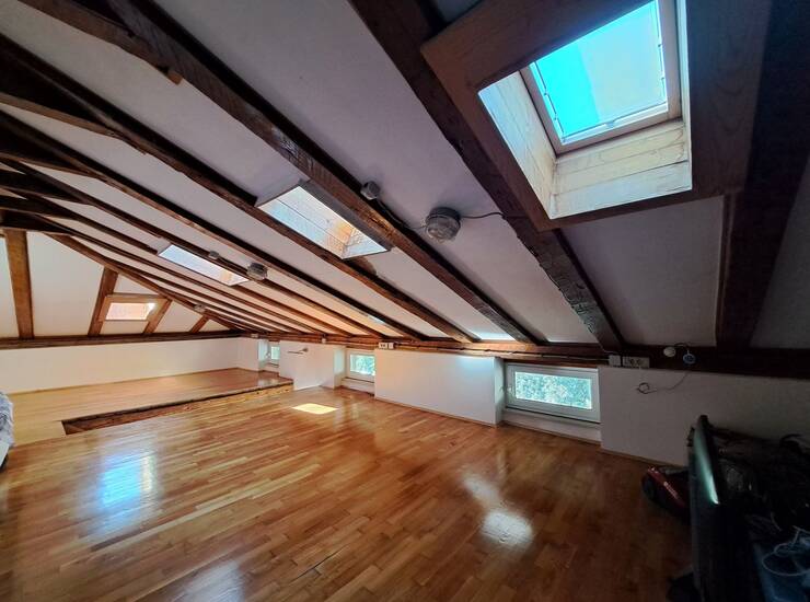 Na potkrovlju, gdje se ulazi u stan, nalaze se prostrana soba i kupaonica.