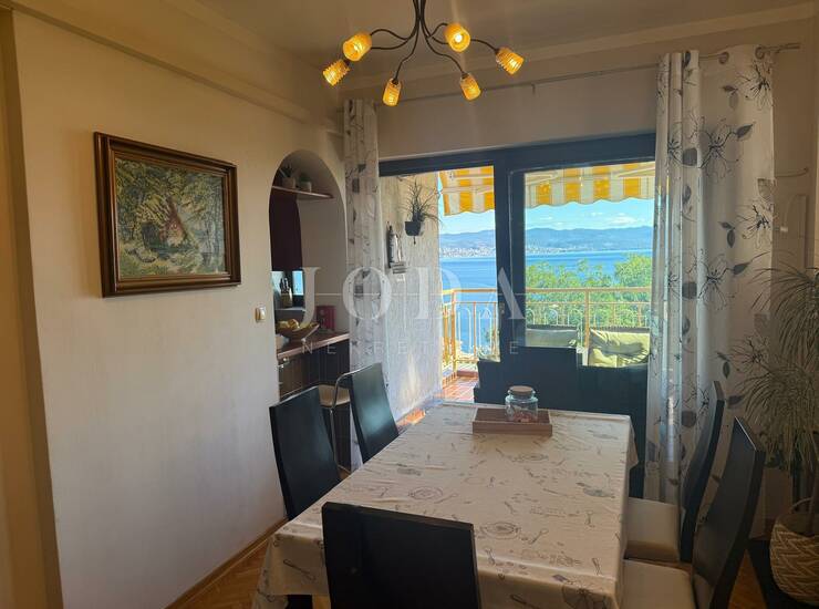 Stan na 2. katu, trosobni s dnevnim boravkom, lođom i prekrasnim pogledom na more i okolinu. Blizina centra Opatije. Stan ima centralno etažno grijanje na pelete i prodaje se kompletno namješten. Pripada mu i jedno parkirno mjesto i dio okućnice. Blizina mora 300 m.
