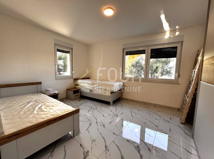 Stanu pripada okućnica od 125m2, podrum od 10 m2 s prozorom, idealan za spremište i smještaj bojlera i dizalice topline, te dva parkirna mjesta s električnom stanicom. Potpuno je namješten i opremljen troslojnim aluminijskim prozorima s električnim roletama, podnim grijanjem putem dizalice topline i klima uređajem u svakoj prostoriji. Vanjski prostor pruža dovoljno mjesta za sunčalište, roštiljanje ili postavljanje jacuzzija.