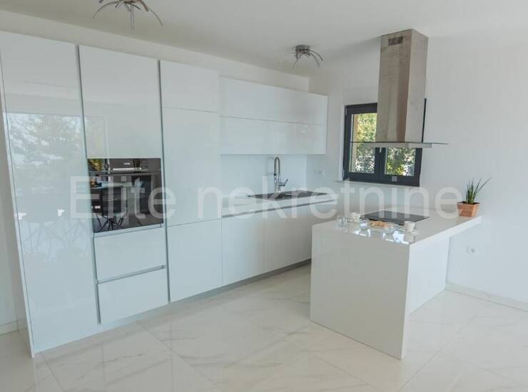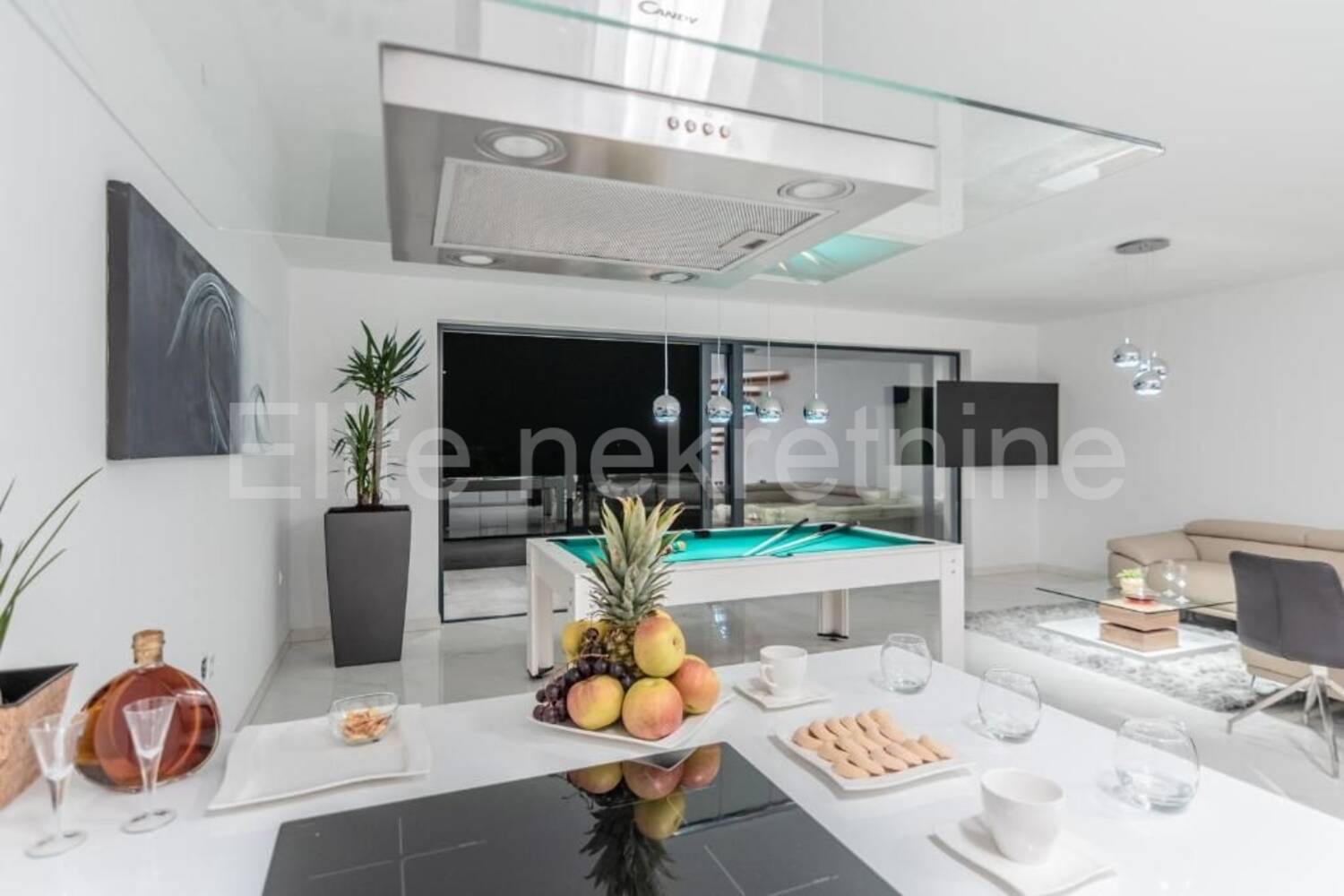 Predivnan stan moderne arhitekture ima sve što je potrebno za opuštanje i uživanje. Parking za više vozila, okućnica, roštilj, četiri terase, fitnes, biljar, bazen samo se neke od prednosti. Plaža je udaljena 1,5 km.