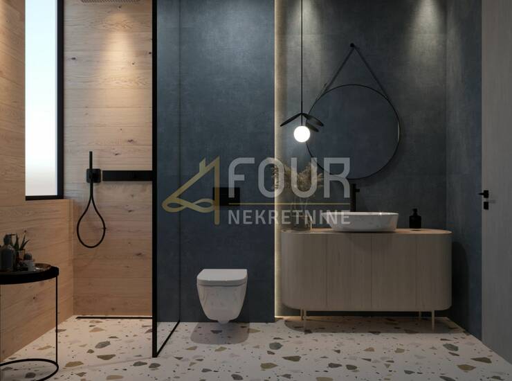 Ova novogradnja, površine 156.35m2, ističe se izvrsnim rasporedom prostorija i visokokvalitetnom gradnjom.