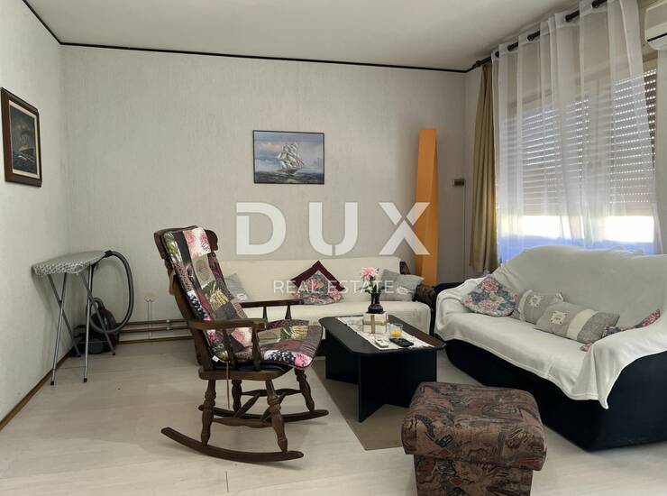 U ponudi imamo dvoetažni stan smješten u mirnom okruženju, udaljen svega 500 metara od mora, plaže i obalne šetnice.