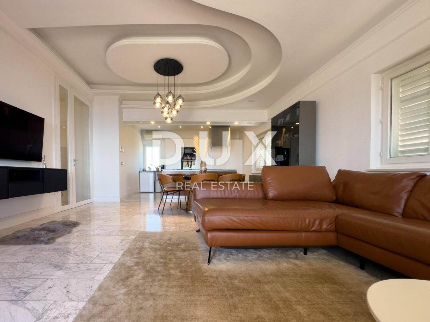 U ekskluzivnoj DUX ponudi na svega pet minuta vožnje od strogog centra Opatije, poznate šetnice Lungomare i kristalno čistog mora, nalazi se ovaj luksuzno i dizajnerski uređen stan s očaravajućim panoramskim pogledom na Kvarnerski zaljev. Smješten u mirnom i zelenilom okruženom dijelu, stan spaja suvremeni stil života s vrhunskom udobnošću i funkcionalnošću.