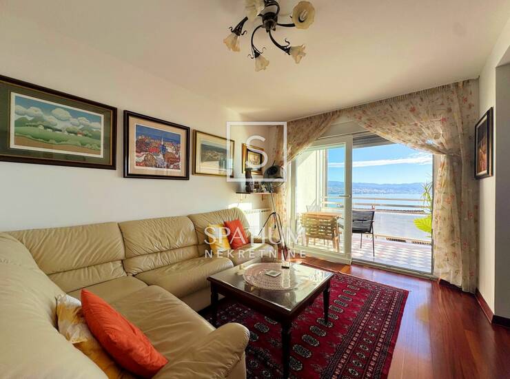 Sastoji se od hodnika, dvije spavaće sobe, prostranog dnevnog boravka povezanog s kuhinjom i blagovaonicom, kupaonice, zasebnog WC-a te dva balkona s otvorenim pogledom na more, otoke, Rijeku i Opatiju. Stan je prozračan, svijetao i izuzetno ugodan za boravak, a zahvaljujući kvalitetnoj gradnji i pažljivo odabranom namještaju spreman je za useljenje bez dodatnih ulaganja.