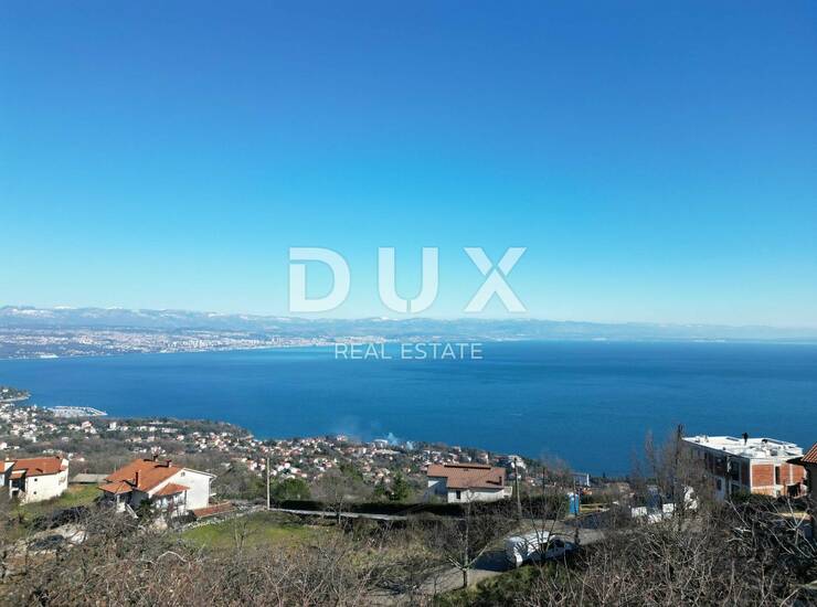 OPATIJA, LOVRAN, DOBREĆ- građevinsko zemljište 1250m2 s pogledom na more za obiteljsku kuću/ villu/ apartmane/ kuću za iznajmljivanje- odmor s bazenom