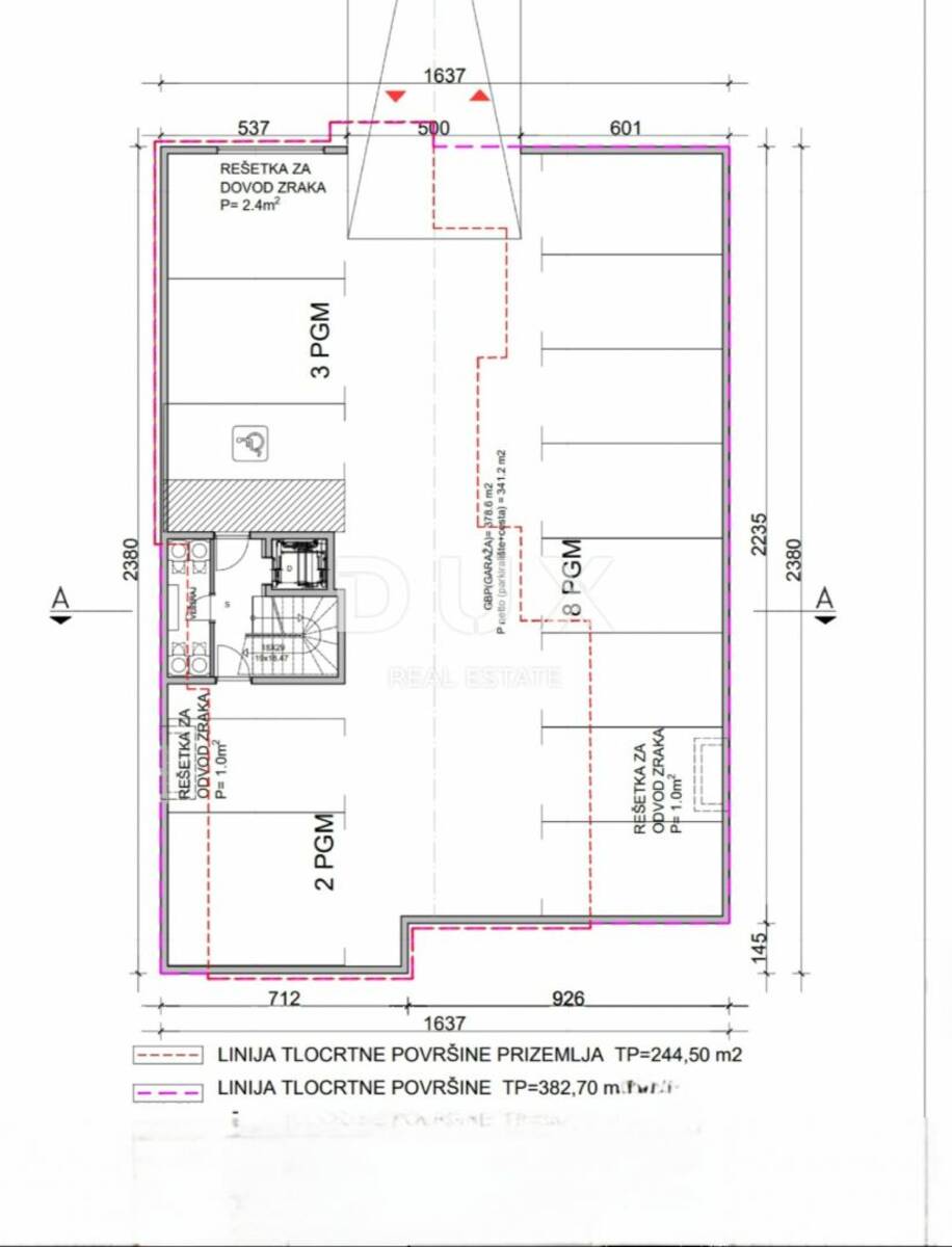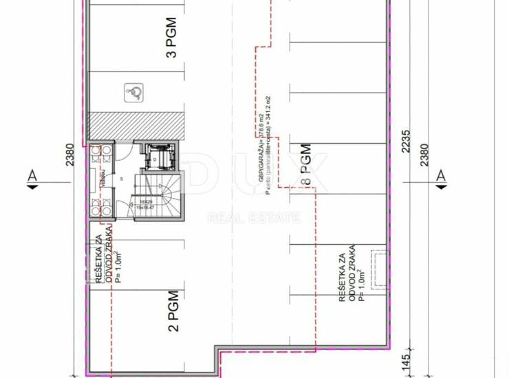 -PODRUM ukupne površine 381m2 – garažni prostor s parking mjestima + prostor za spremnike + wellnes (ili neki drugi sadržaj po želji potencijalnog kupca)