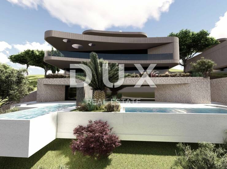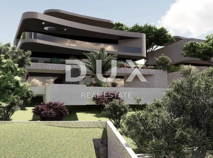 OPATIJA, CENTAR - vrhunska pozicija iznad centra, zemljište projektom za luksuznu zgradu, pogled na more
