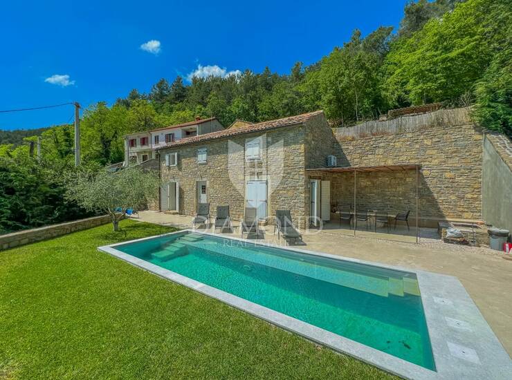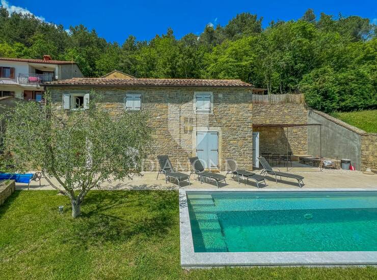 Oprtalj okolica, dizajnerska kamena kuća sa bazenom
