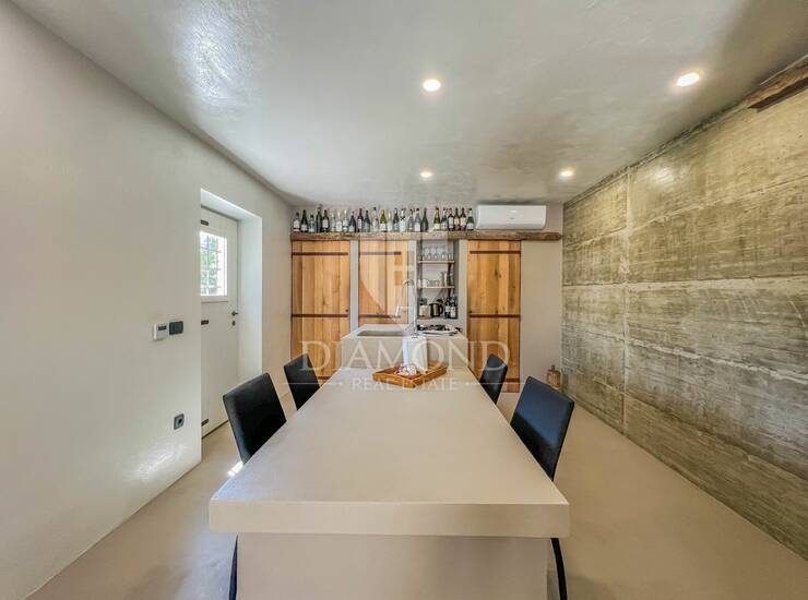 Radi se zapravo o tradicionalnoj istarskoj kamenoj kući koja je kompletno renovirana 2015.godine. Prilikom rekonstrukcije korišten je istarski kamen te se poštivala istarska arhitektura i oblik kuće, a sam interijer je opremljen kvalitetnim dizajnerskim namještajem po mjeri čime je kuća dobila dašak modernosti.