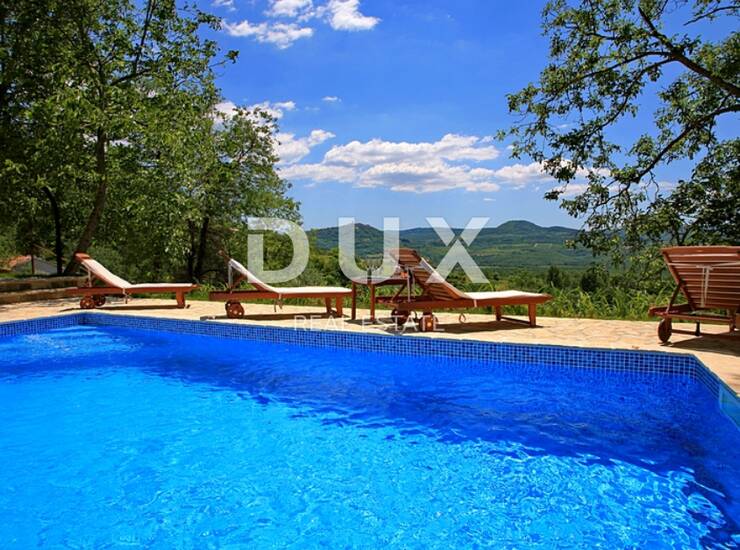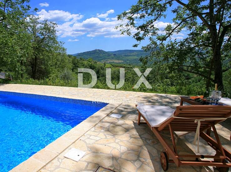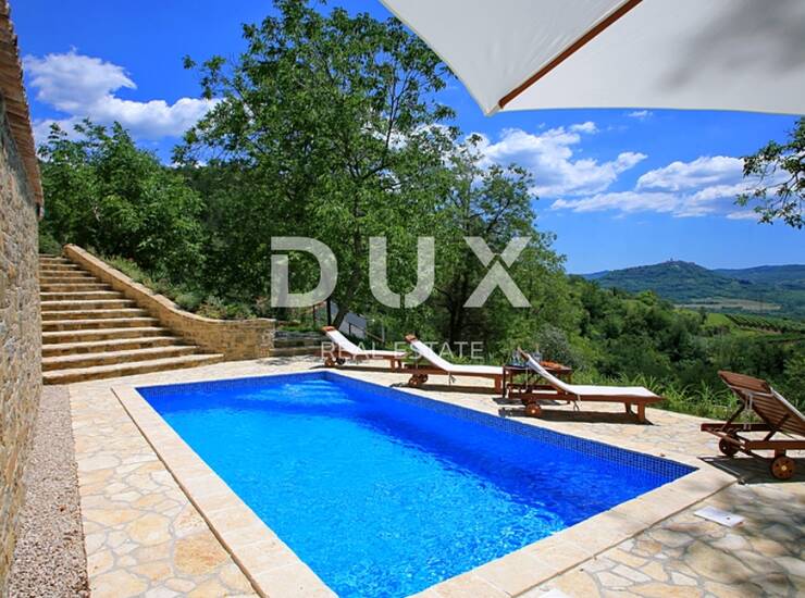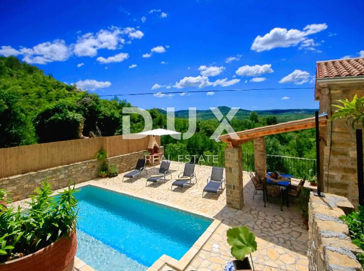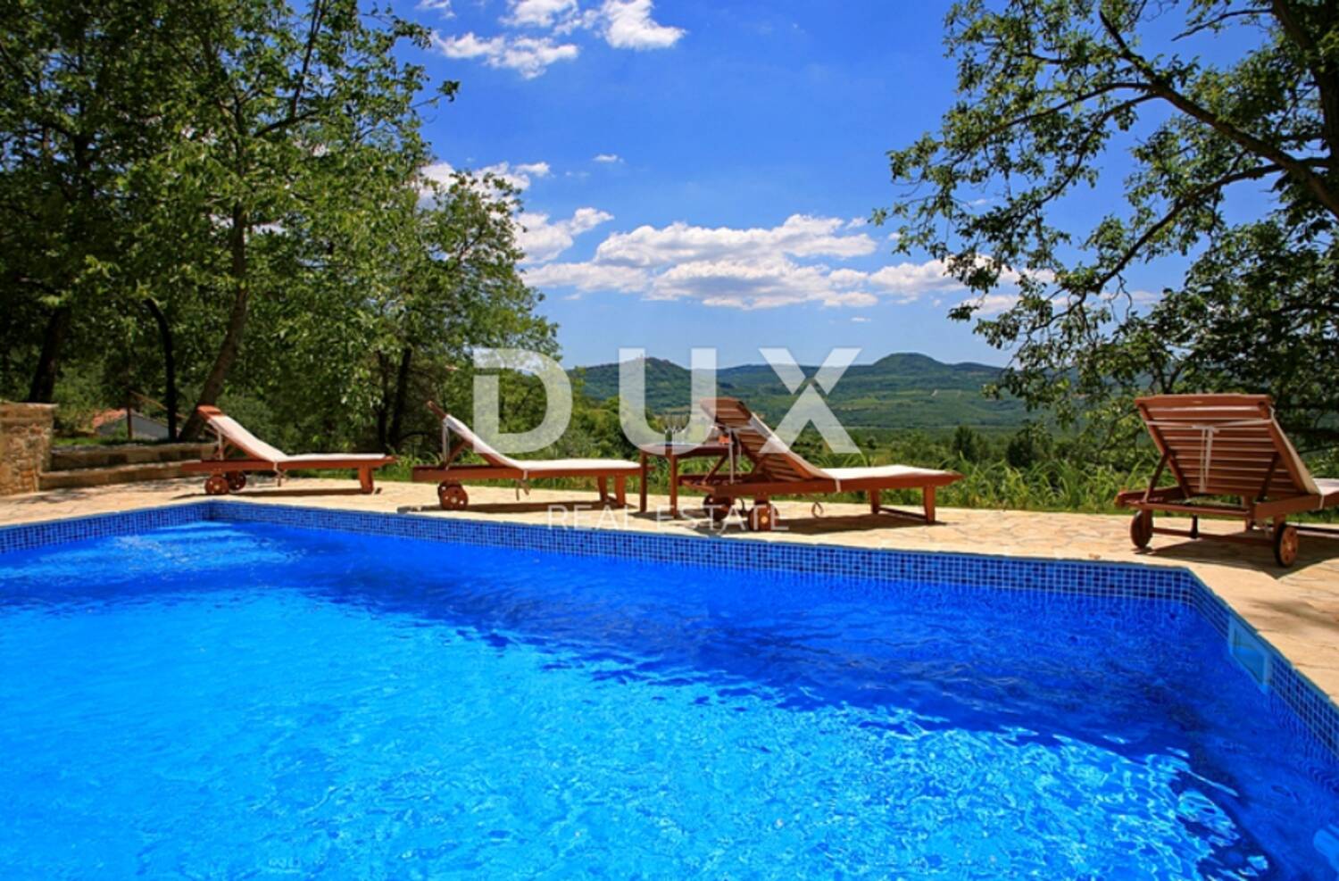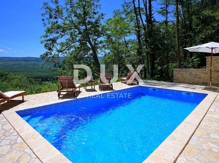 Oprtalj okolica, kamena kuća sa bazenom i pogledom