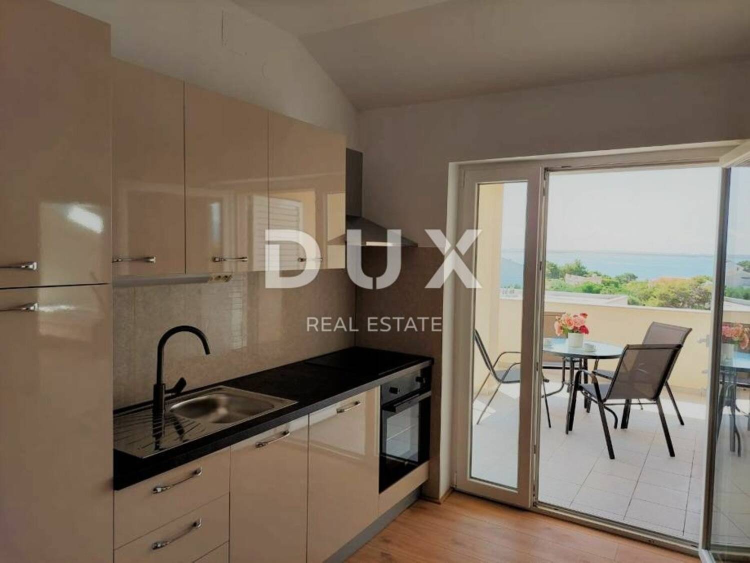 Dnevni boravak je idealno mjesto za opuštanje i druženje s obitelji i prijateljima. No, ono što ovaj apartman zaista izdvaja su dvije prostrane terase s kojih se pruža zadivljujući pogled na kristalno čisto more. Zamislite se kako uživate u jutarnjoj kavi ili zalasku sunca uz ovakav panoramski pogled - to je jednostavno nezaboravno iskustvo!