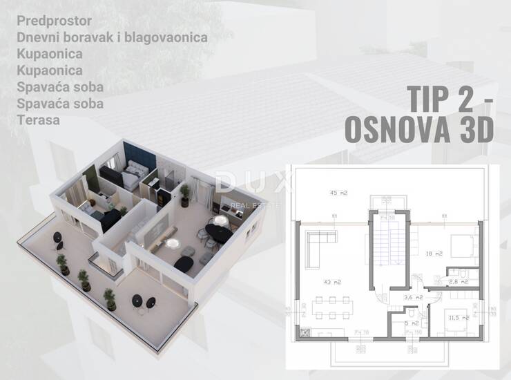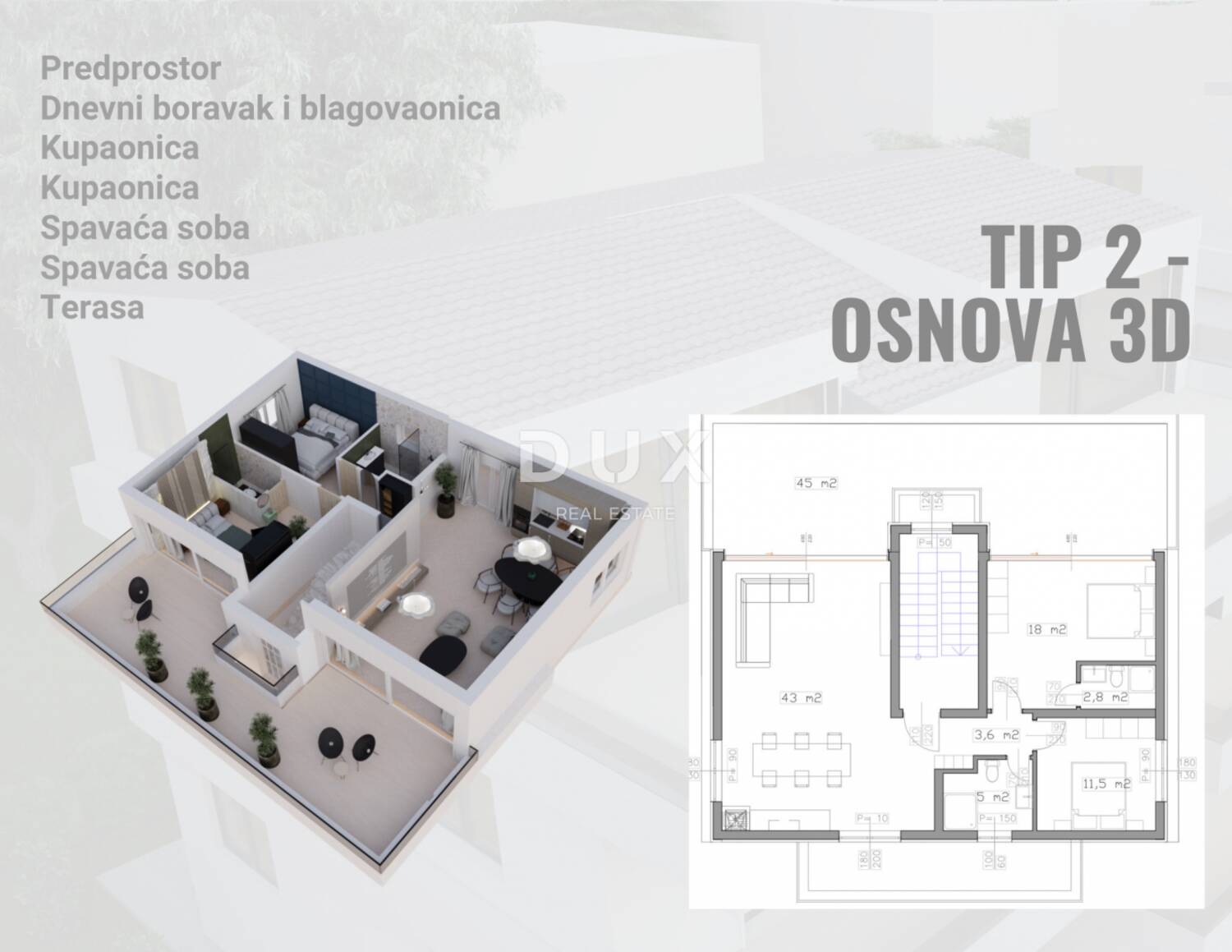 Ekskluzivan stan 2S+DB površine 65 m2 + terasa + parkirno mjesto.