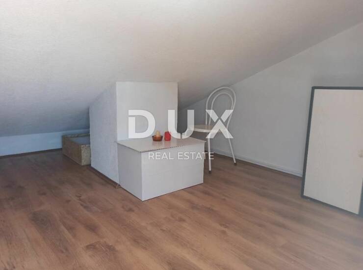 Penjanjem uz polukružne stepenice iz dnevnog boravka stižete do drugog kata, u potkrovlje. Ondje vas čeka velika spavaća soba s udobnim krevetom, a iz nje možete izaći na ograđenu terasu s prekrasnim pogledom na more - savršeno mjesto za romantične večeri ili osvježavajuće jutarnje kave uz panoramski vidik.