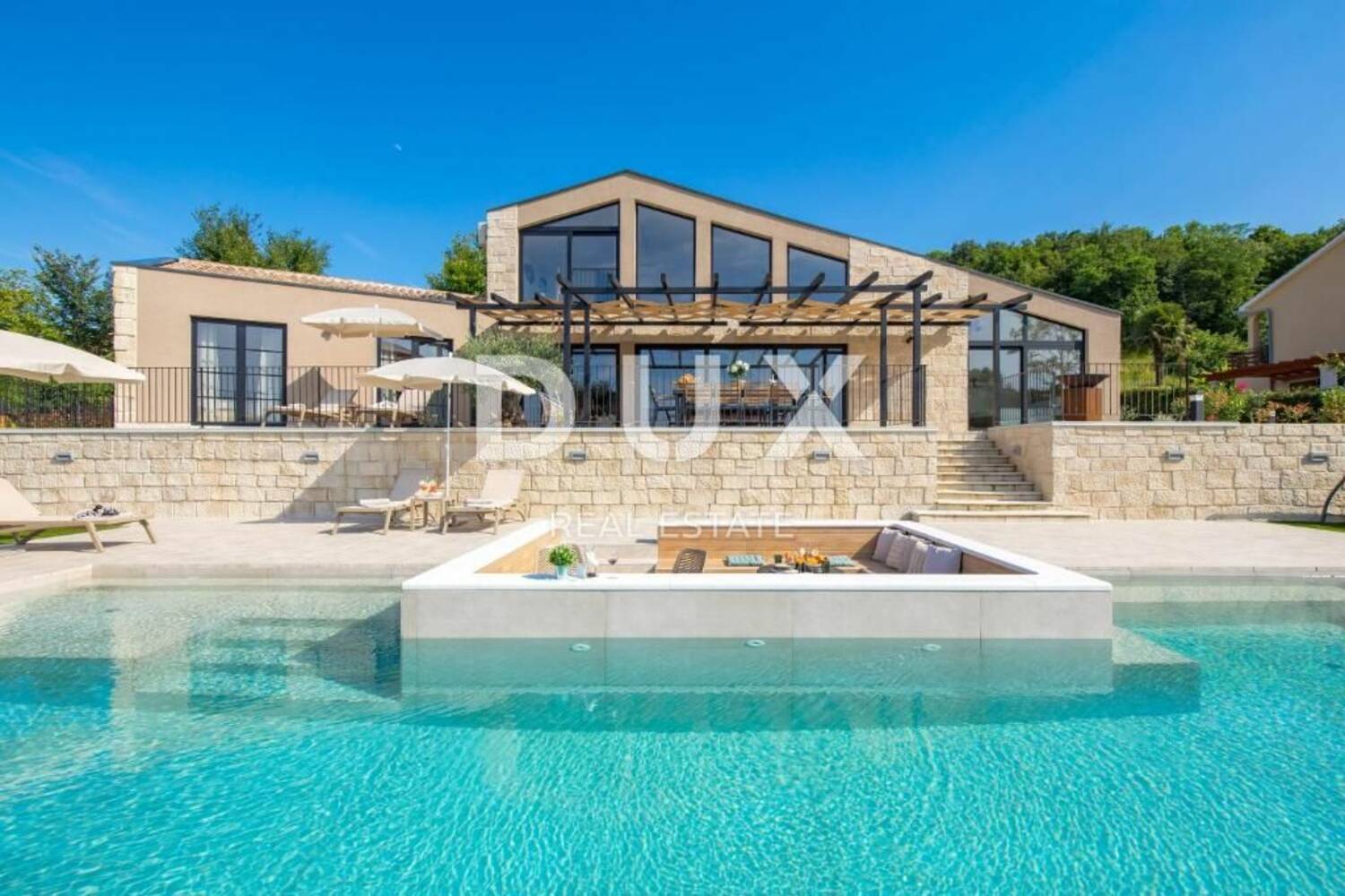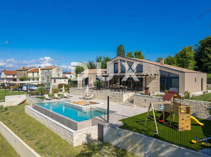 U DUX ponudi izdvajamo luksuznu vilu s bazenom, stambene površine 230 m² i prostranom okućnicom od 1.400 m², smještenu u mirnom mjestu u središnjoj Istri, u blizini povijesnog Motovuna. Vila pruža izniman panoramski pogled s terasa i prozora koji se prostire preko istarskih brežuljaka, sve do Slovenije i Italije.