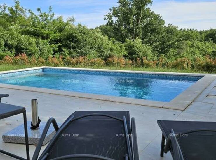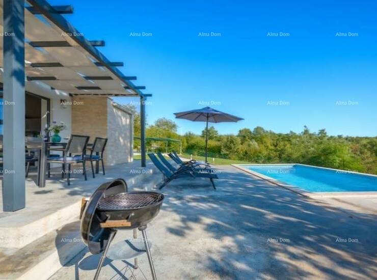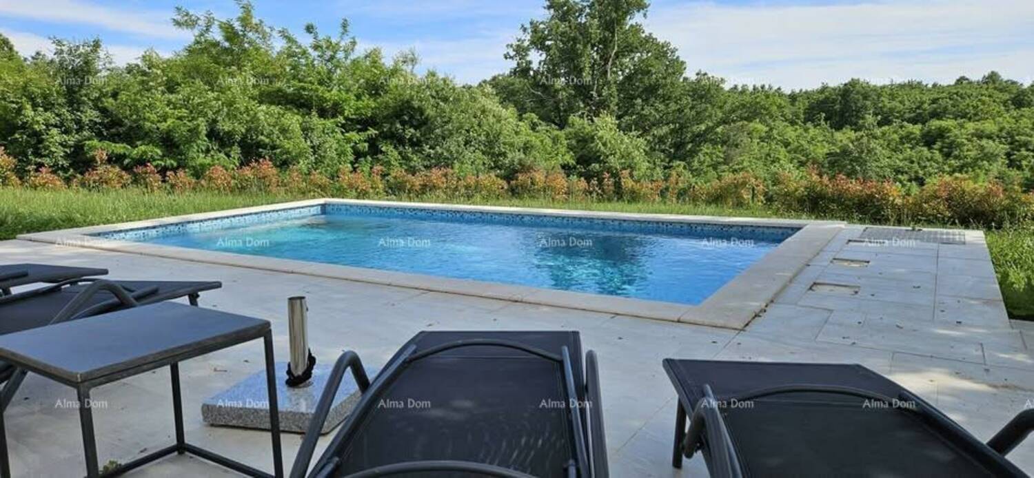U samom središtu Istre prodaje se potpuno opremljena vila s bazenom, smještena u mirnom okruženju netaknute prirode, s otvorenim pogledom na zelenilo.
