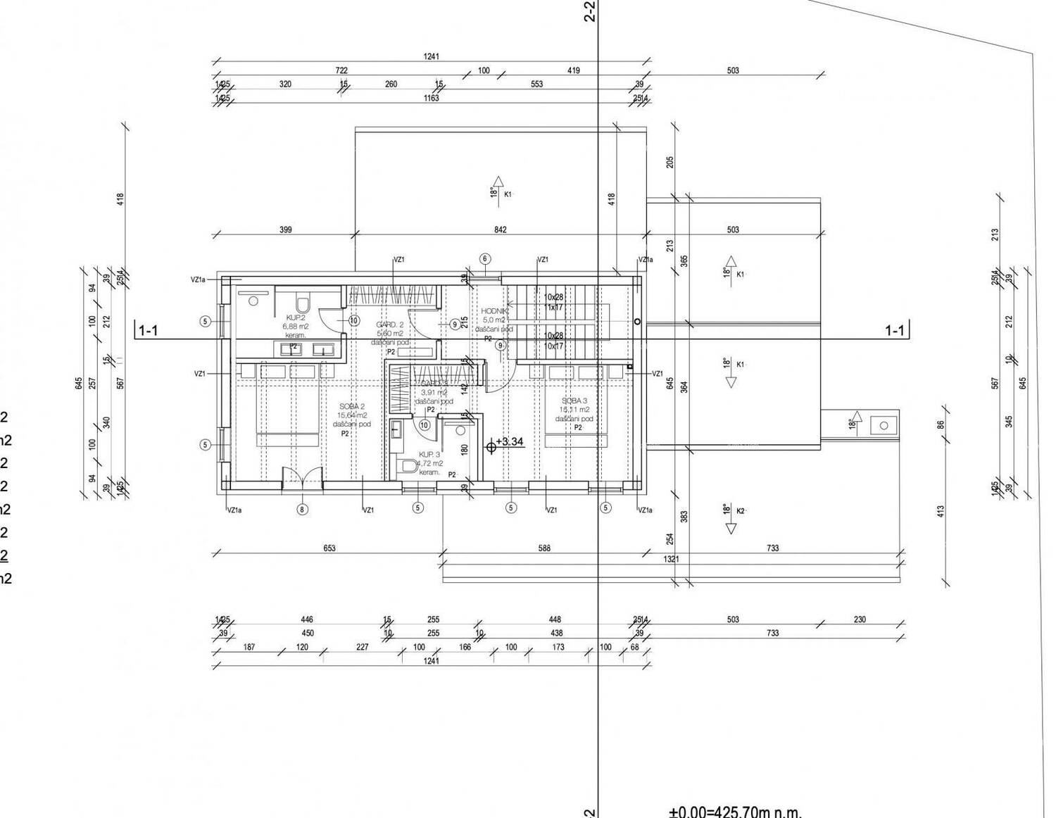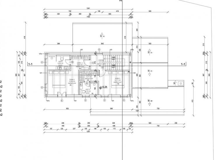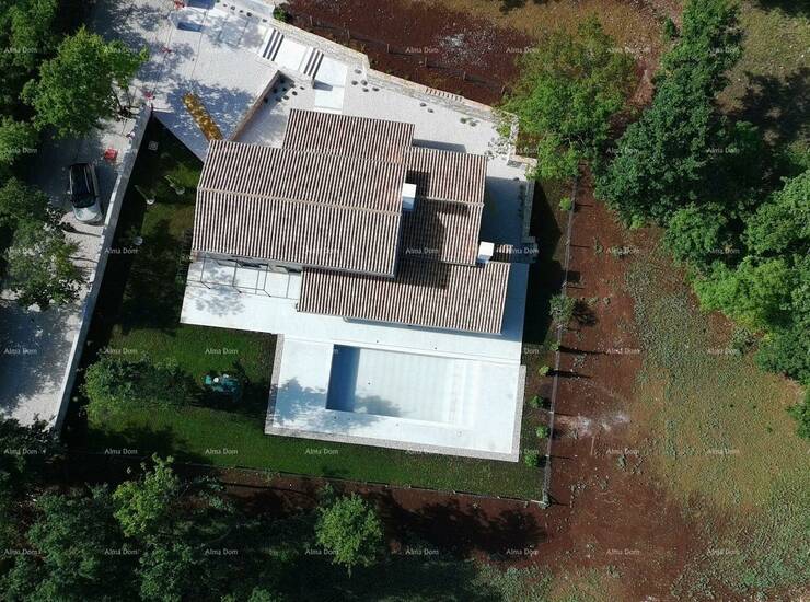 Kuća se sastoji od prizemlja i prvog kata. U prizemlju se nalazi: ulaz, vešeraj, spavaća soba s kupaonom, dnevni boravak, kuhinja, balgavaona, gostinjski toalet. U dvorištu se nalaze natkrivena terasa, bazen i sunčalište. Prvi kat uključuje hodnik, 2 spavaće sobe s vlatitim kupaonama i garderobama.