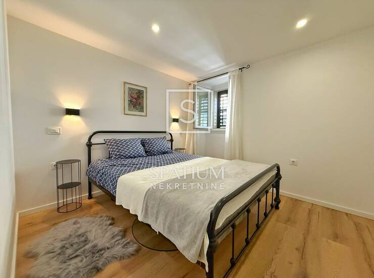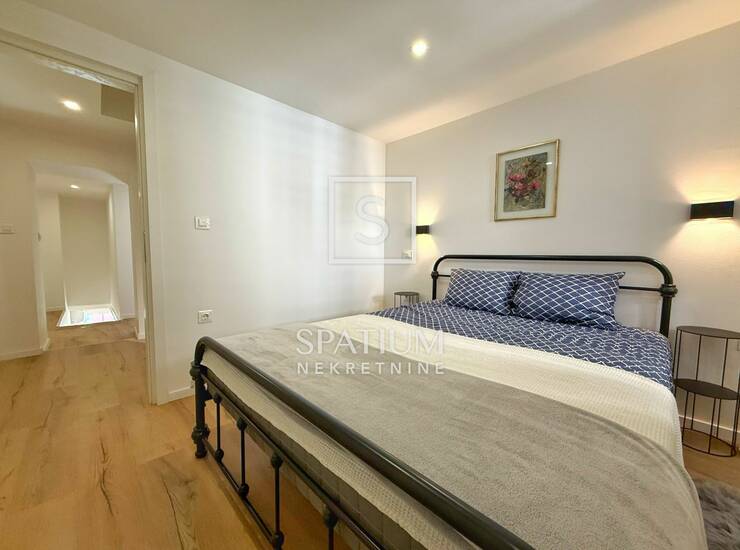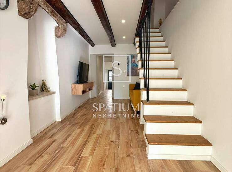 Sastoji se od ulaznog hodnika, kuhinje, blagovaonice te omanjeg dnevnog boravka i wc-a. Na katu su dvije spavaće sobe koje dijele jednu kupaonicu, a dodatnu vrijednost ove nekretnine ističemo u prizemnom dijelu gdje se nalazi prostor od cca. 35 m2 koji se može iskoristiti kao manji jednosobni stan/apartman što će poslužiti za dugoročni najam ili kao odvojeni smještaj za nekoga od Vaše obitelji.
