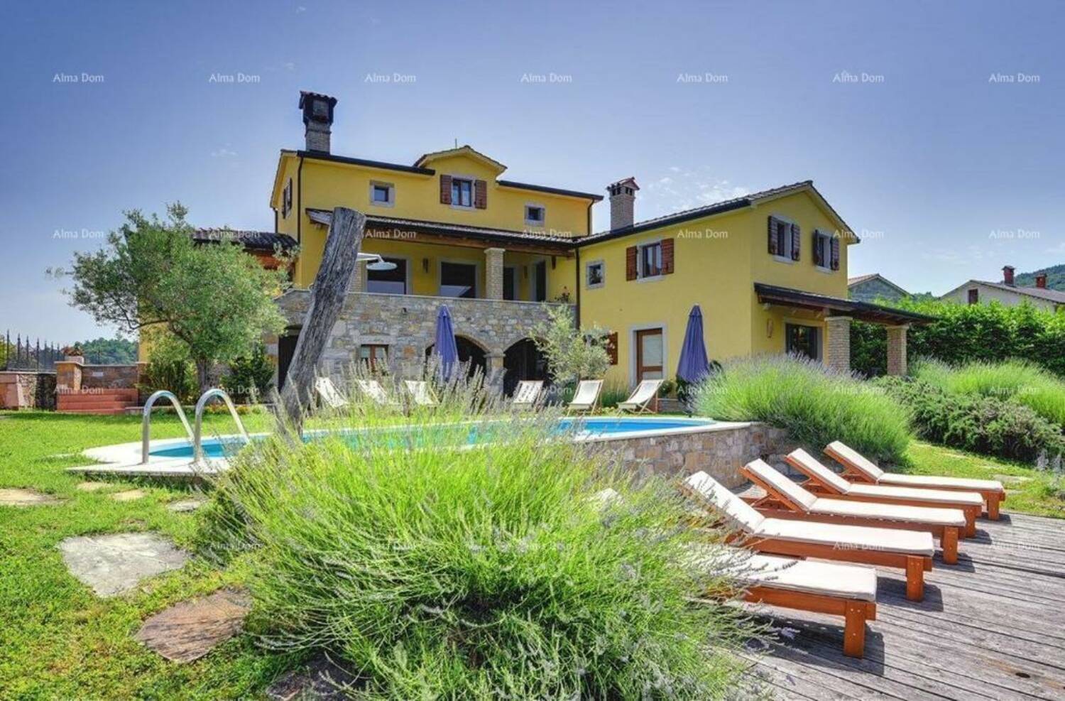 Vila ima svoj teren i vrt. Prostran vrt sa zanimljivim detaljima kao što je stari seljački plug, koji okružuju kuću i vode do primamljivog privatnog bazena od 32 m2. Tu su i zrele masline, grmovi cvijeća i mirisno bilje uz prekrasan pogled iz svakog kuta.