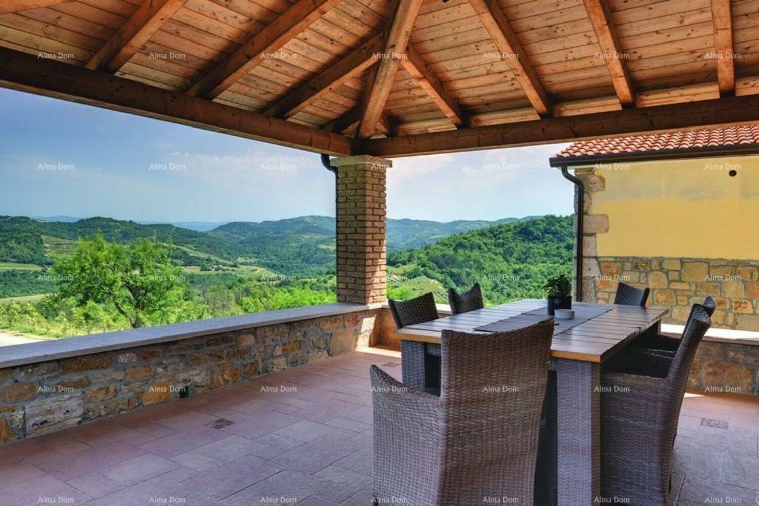 Velika lođa iznad glavne kuće uređena je s velikim stolom za blagovanje i autentičnim ugrađenim roštiljom.