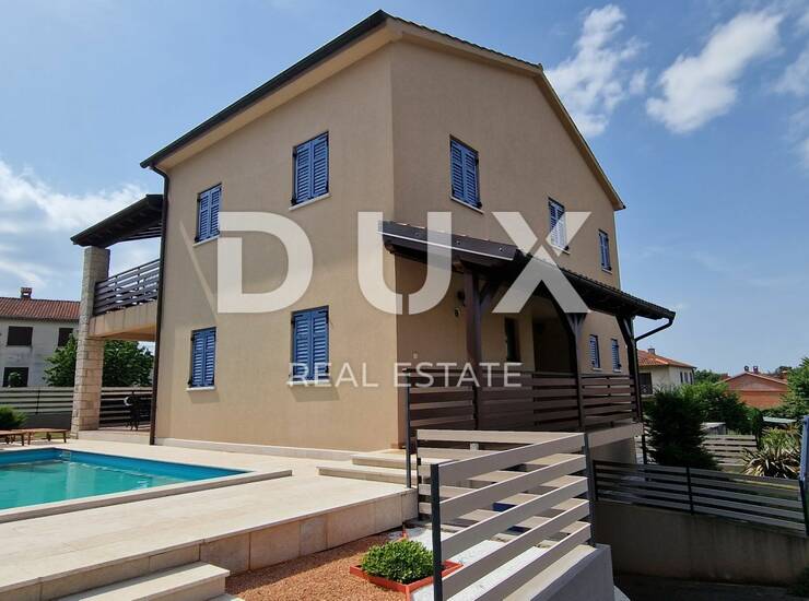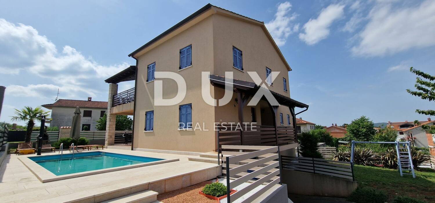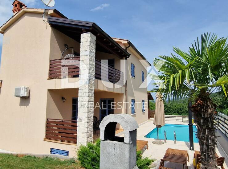 Na svega par minuta vožnje od Pazina nalazi se ova prekrasna vila s bazenom, čija se površina od 280 m2 proteže kroz suteren, prizemlje i prvi kat.