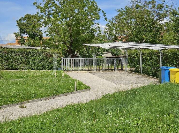 Na ograđenoj okućnici nalazi se natkriveni parking za dva vozila i bazen sa sunčalištem.