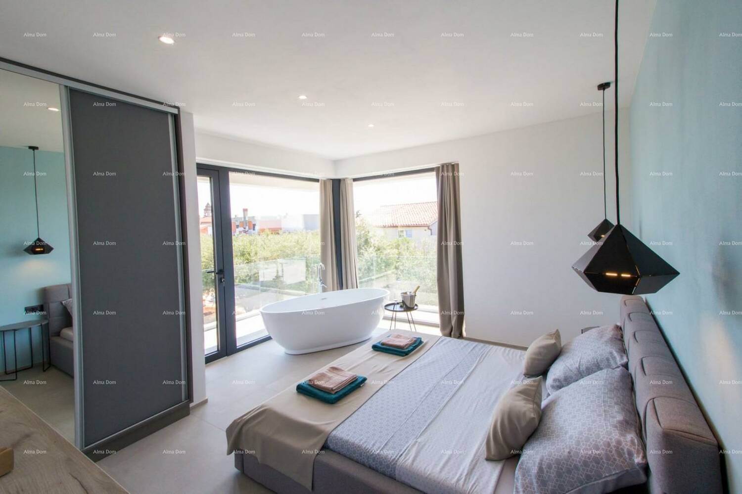 Sve spavaće sobe imaju pristup natkrivenoj terasi (28 m²) te ravnoj krovnoj terasi (31 m²) s predivnim pogledom na more i otočje Brijuni.