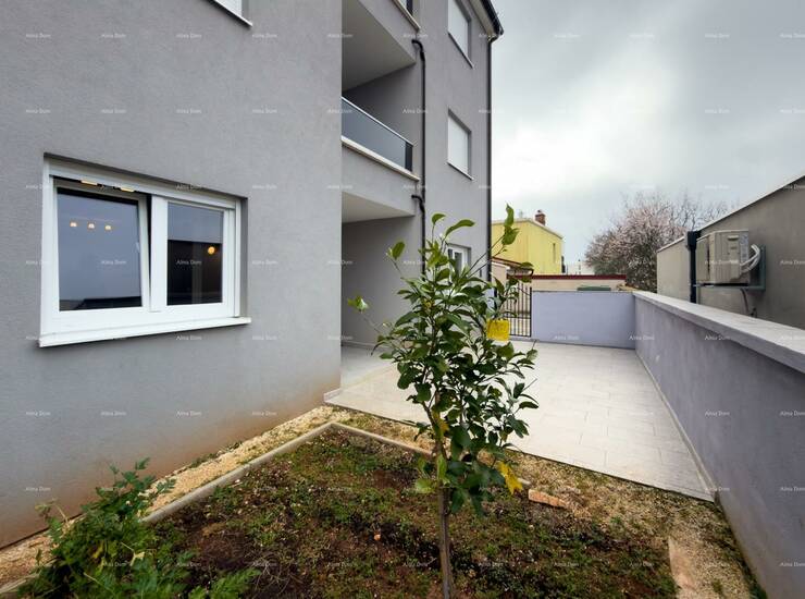 Stan se nalazi u prizemlju novogradnje i sastoji se od dvije spavaće sobe, kupatila, kuhinje, blagovaonice i dnevnog boravka iz kog se izlazi na natkrivenu terasu i vrt.
